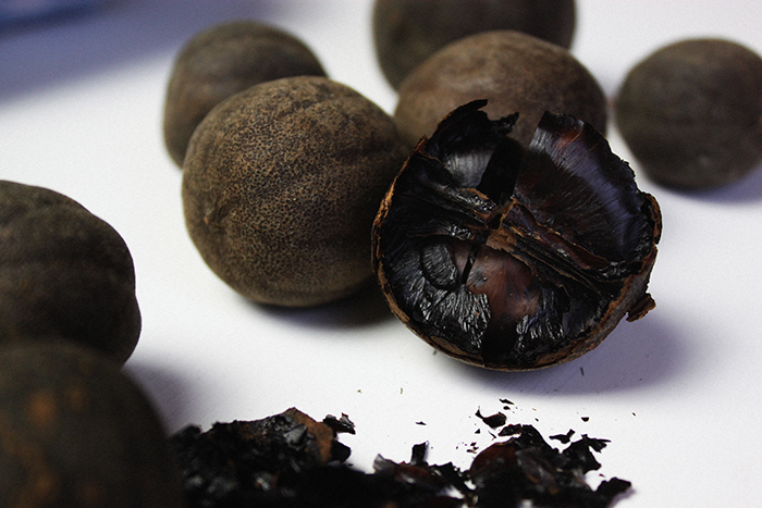 Il mesure environ 4 cm de long, il est très léger, sa peau et son intérieur sont d’un brun sombre. A l’intérieur, les petits sacs qui contenaient le jus sont desséchés mais parfaitement reconnaissables, les pépins aussi.